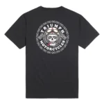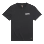 The Triumph Billybob Black Tee is a stylish 100% cotton t-shirt featuring a soft-touch printed Triumph logo on the front and a biker skull motif on the back. Perfect for casual wear, it combines comfort and edgy design.
