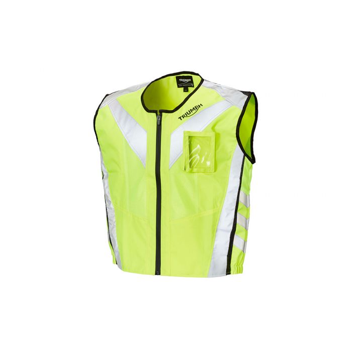 The Triumph Bright Vest is a CE certified, high-visibility, and reflective vest designed to enhance your safety during rides. It easily zips over any motorcycle jacket and features grip material at the hem to stay in place. The vest is packable, folding into its own back pocket for convenient storage.