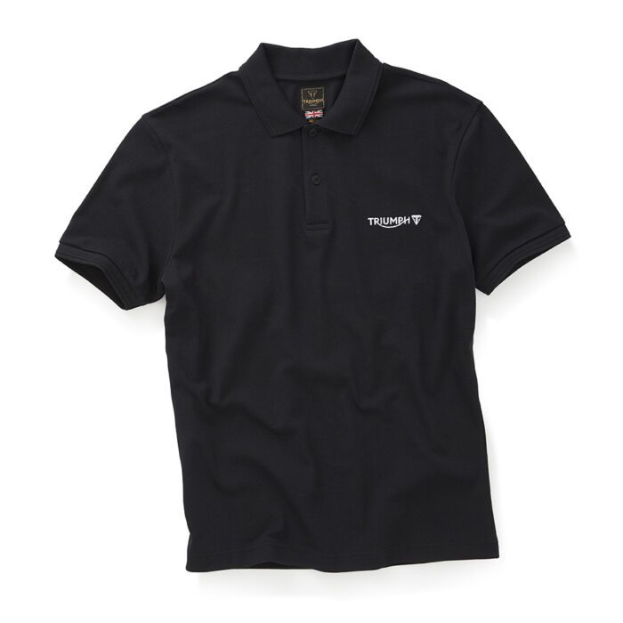 The Triumph Cumbria Polo – Black is a classic polo shirt made from 100% premium cotton. Its jet-black color and finely embroidered Triumph logo on the chest make it a versatile and stylish addition to any wardrobe.