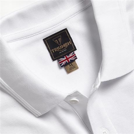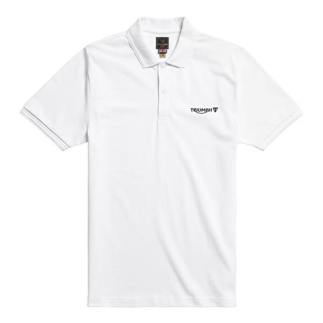 A classic 100% cotton polo shirt in White, with quality embroidered Triumph logo branding in Black on the chest.