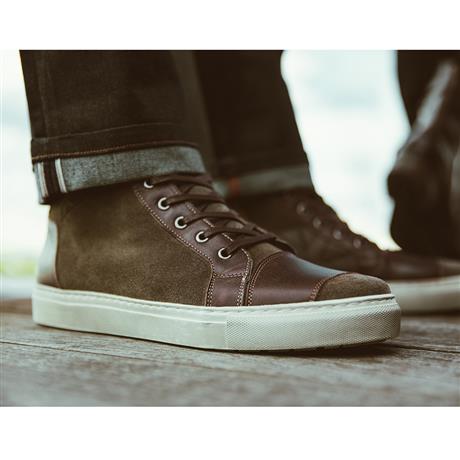 Hi-top trainer style that can easily be worn on and off the bike. • Suede and leather combination • Lace up hi-top style trainer • Gear change • D3o comfort insole to offer enhanced shock absorption and superior cushioning