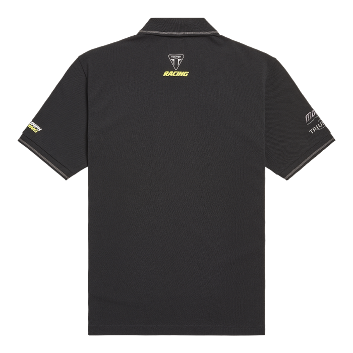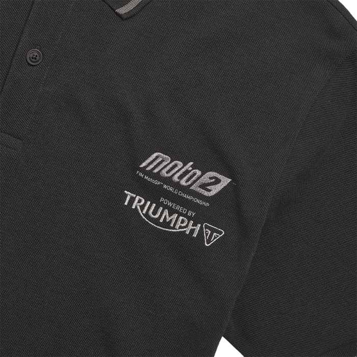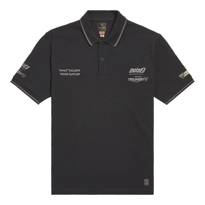 The Moto2™ GP Polo Shirt is a stylish and comfortable addition to any Triumph Racing enthusiast’s wardrobe. Made from 100% pique cotton, this classic fit polo features the official Triumph engine supplier logos to Moto2™.