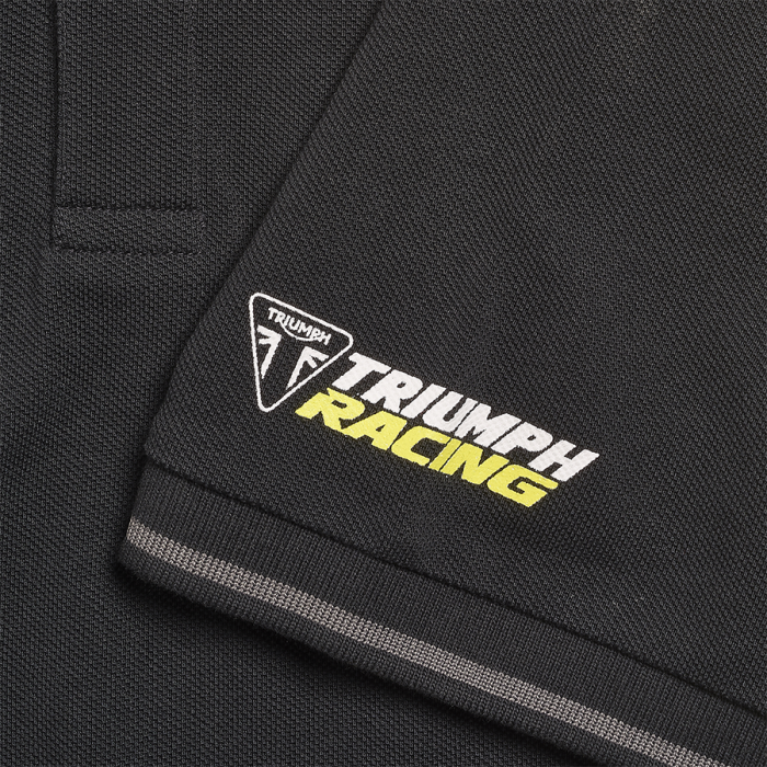 Show your support for Triumph Racing with the Moto2™ GP Polo Shirt. Crafted from premium 100% pique cotton, this polo shirt offers both comfort and durability. The classic fit and short-sleeve design provides a timeless look that is perfect for any casual occasion. The jet-black color adds a sleek and versatile touch, making it easy to pair with any outfit. The shirt features the official Triumph engine supplier logos to Moto2™ prominently displayed on the chest, showcasing your passion for the iconic brand. Whether you’re at the track or out with friends, the Moto2™ GP Polo Shirt is a stylish and essential addition to your wardrobe. Its high-quality construction ensures it can withstand repeated washings without losing its shape or color.