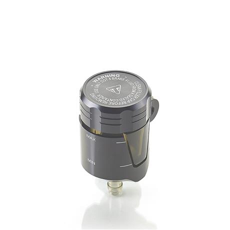 A CNC machined aluminum Rear Brake Reservoir with tinted integral sight glass and laser etched detail for the Street Triple models.