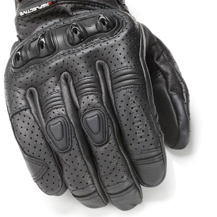 The Triumph Jansson Leather Gloves are designed for optimal comfort and protection. Made from perforated leather, they feature vented TPU-moulded knuckle protectors and reflective details for enhanced visibility. Perfect for warm weather riding, these gloves ensure excellent airflow and a secure fit.