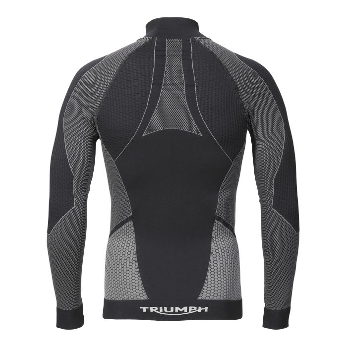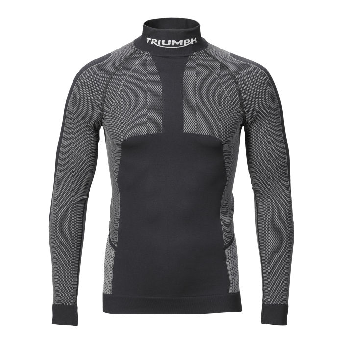 The Triumph Long Sleeve Base Layer Tee is designed for maximum comfort and performance. Made from heat-retaining, moisture-wicking fabric, it provides a second-skin fit that keeps you warm and dry during your rides.