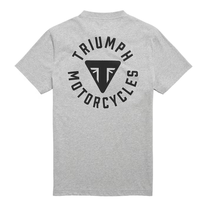 The Triumph Newlyn Grey Tee is a stylish and comfortable addition to any wardrobe. Soft 100% cotton tee with a classic patch chest pocket bearing Triumph roundel printed design on the front, featuring a larger roundel print on the back.