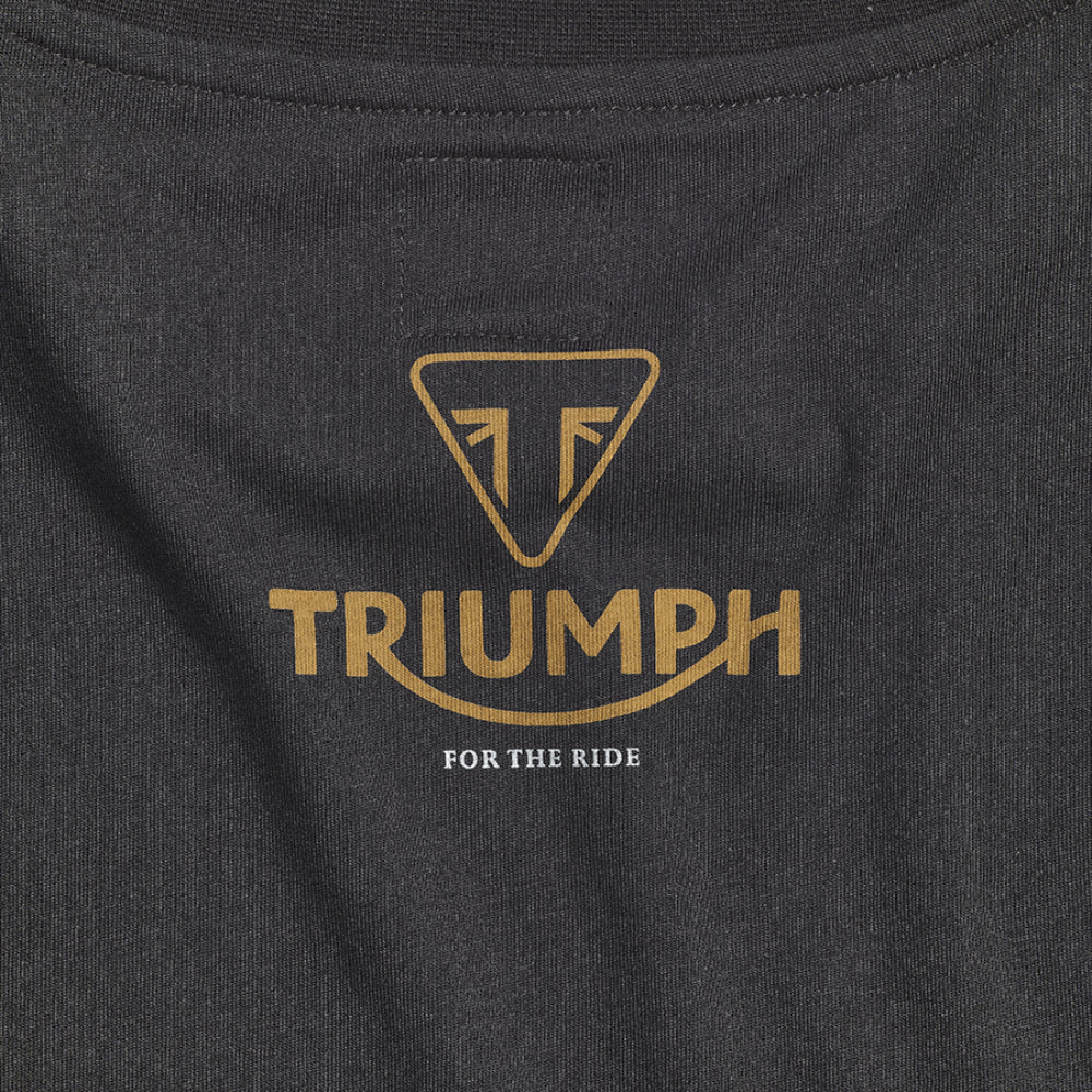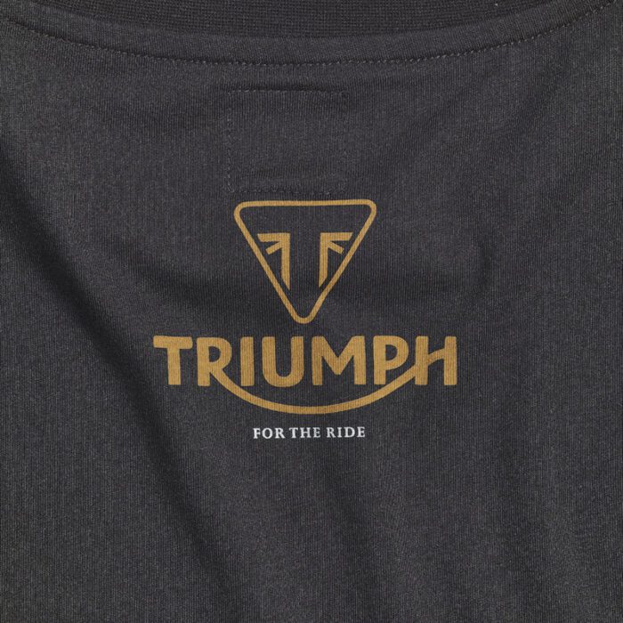 Show off your love for Triumph motorcycles with the Triumph Tiger 1200 Tee. Crafted from premium 100% soft cotton, this t-shirt offers both comfort and durability. The classic fit and crew neck design provides a timeless look that is perfect for any casual occasion. The front of the t-shirt features the official Triumph Tiger 1200 logo in bold print, while the back displays the iconic Triumph shield with the words “FOR THE RIDE” underneath. This sleek black tee is designed to make a statement and showcase your passion for the Triumph brand. Whether you’re riding your Triumph motorcycle or simply hanging out with friends, the Triumph Tiger 1200 Tee is a stylish and durable addition to your wardrobe.