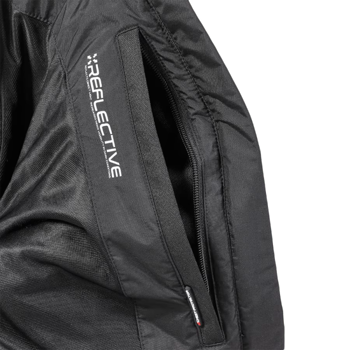 Safety is a top priority with the Triple Roadster Jacket. It includes removable CE-certified D3O® shoulder and elbow protectors, which offer high-impact resistance while maintaining flexibility. Riders also have the option to upgrade with D3O® back and chest protectors for additional safety. The jacket’s reflective zones bounce light back to the source, increasing visibility during night rides.