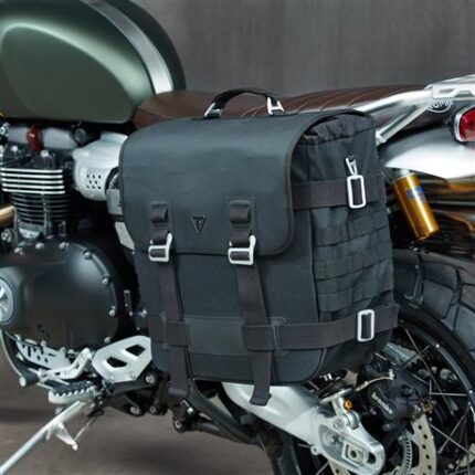 Whether paired with the right pannier or standing solo, this accessory offers a seamless bolt-on fit to Modern Classics like the Bonneville Bobber and Speedmaster via rail kit A9518218 (sold separately) . Its showerproof fabric keeps valuables protected, and the optional rain cover adds an extra layer of defense for wet conditions.