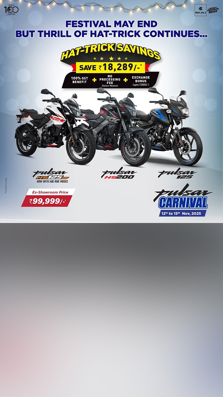 Enjoy hat-trick savings on the Pulsar 125 with benefits up to ₹18,289! Get GST benefit, exchange bonus, and a 10-year warranty. Book now!