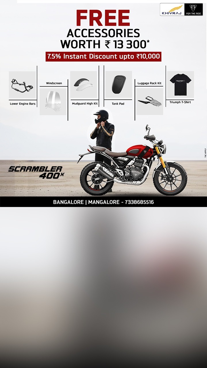 Free accessories worth ₹13,300 on Scrambler 400 X